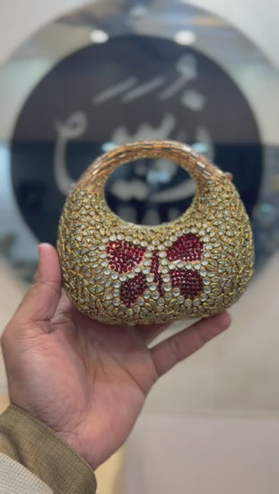 Make a lasting impression with this exquisite acrylic kundan clutch—a perfect blend of modern sophistication and traditional artistry. Each piece features hand-crafted kundan work that sparkles with every movement, ensuring you stand out at any occasion. The lightweight acrylic frame offers durability without compromising on elegance, while its compact silhouette fits effortlessly into your hand. Whether you're attending a wedding, celebration, or special evening out, this clutch elevates your entire look. Invest in a timeless accessory that speaks volumes about your refined taste and style.